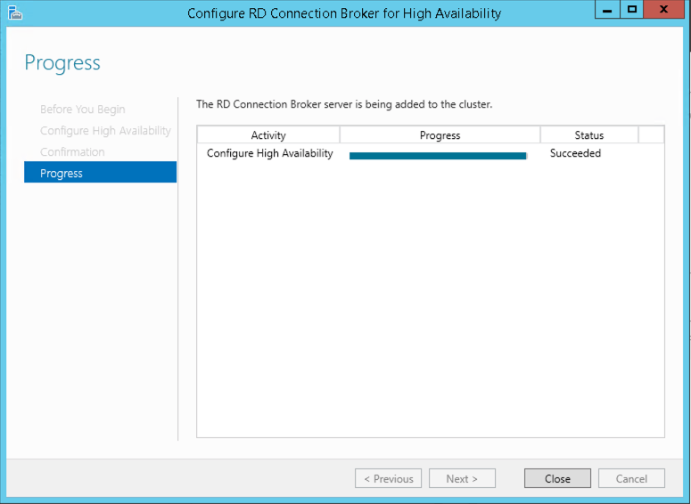 7. Open Server Manager and navigate to Remote Desktop Services > Overview. Right click on RD Connection Broker and select Configure High Availability. Enter the following information when prompted: